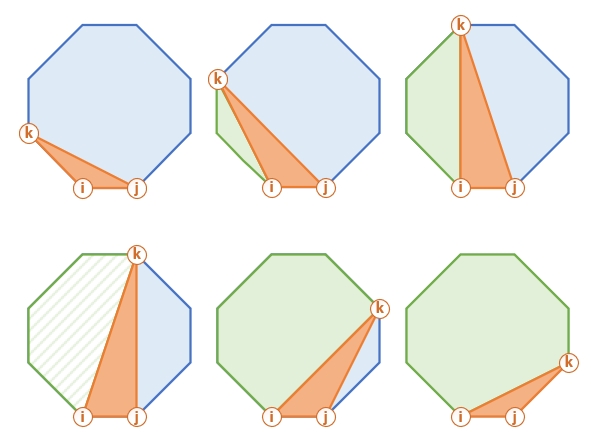 triangles, and get the minimum score for sub-polygons using the recursion.