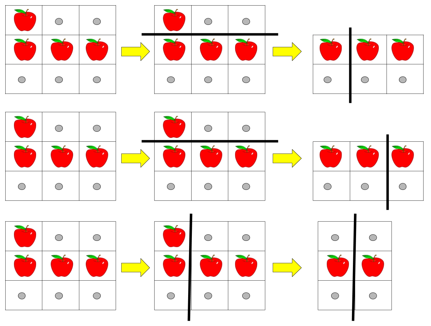 Explanation: The figure above shows the three ways to cut the pizza. Note that pieces must contain at least one apple.Example 2: