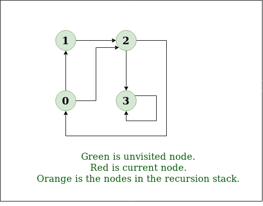 Input: n = 4, e = 6 2 -> 0, 0 -> 2, 1 -> 2, 0 -> 1, 3 -> 3, 1 -> 3 Output: DFS from vertex 2 : 2 0 1 3 Explanation: DFS Diagram: