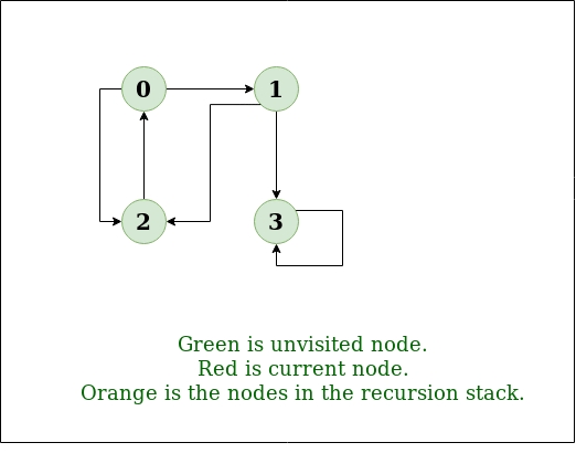 Input: n = 4, e = 6 0 -> 1, 0 -> 2, 1 -> 2, 2 -> 0, 2 -> 3, 3 -> 3 Output: DFS from vertex 1 : 1 2 0 3 Explanation: DFS Diagram: